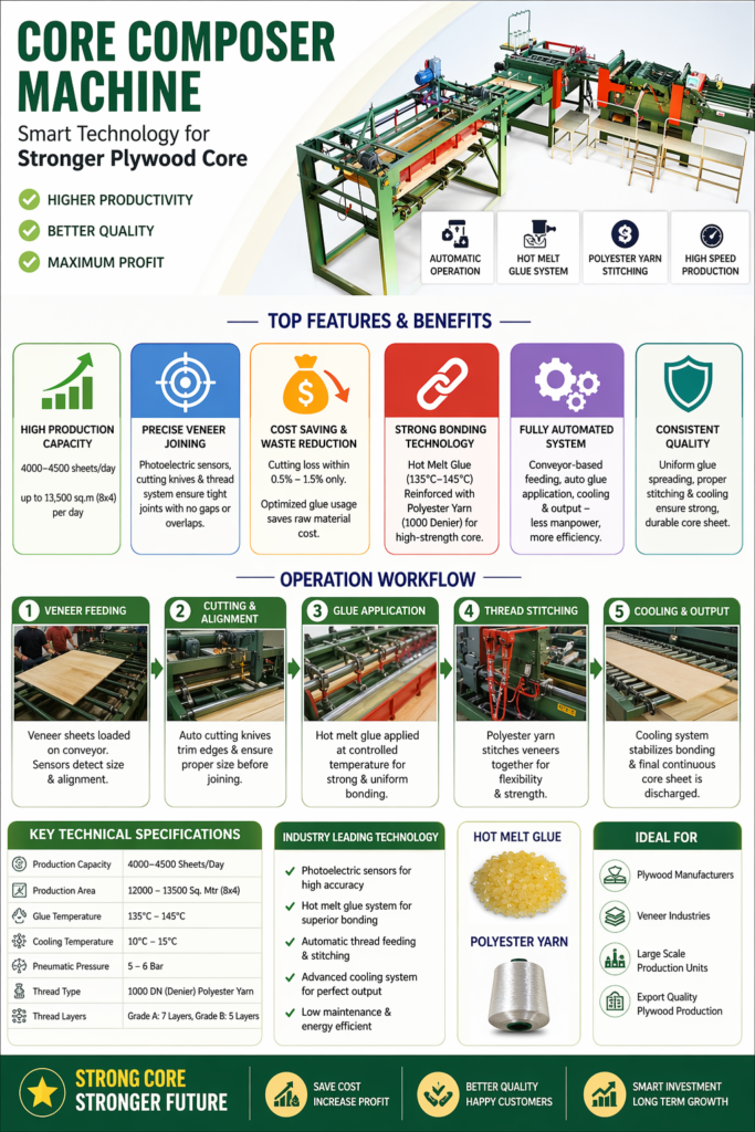 If you are serious about scaling your plywood business, the Core Composer Machine is not just an upgrade — it’s a smart investment.